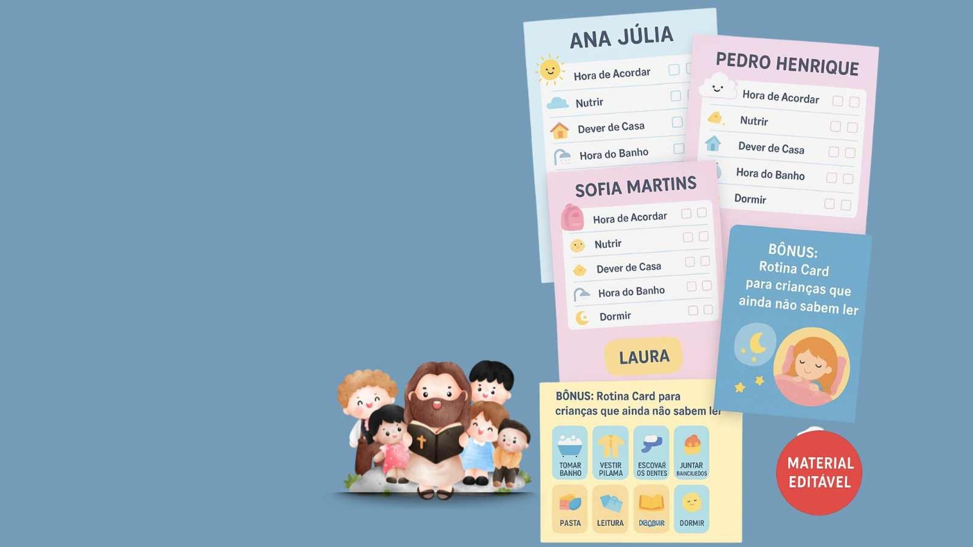 Rotina de Disciplinas Espirituais - Rotina com foco em atividades como ler a bíblia e orar, ajudando a criança a desenvolver valores espirituais no dia a dia.