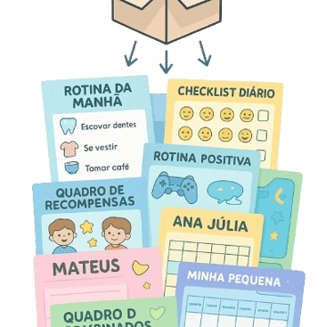 Ao comprar o pacote com várias rotinas, você pode escolher junto com seu filho qual rotina ele mais gosta.